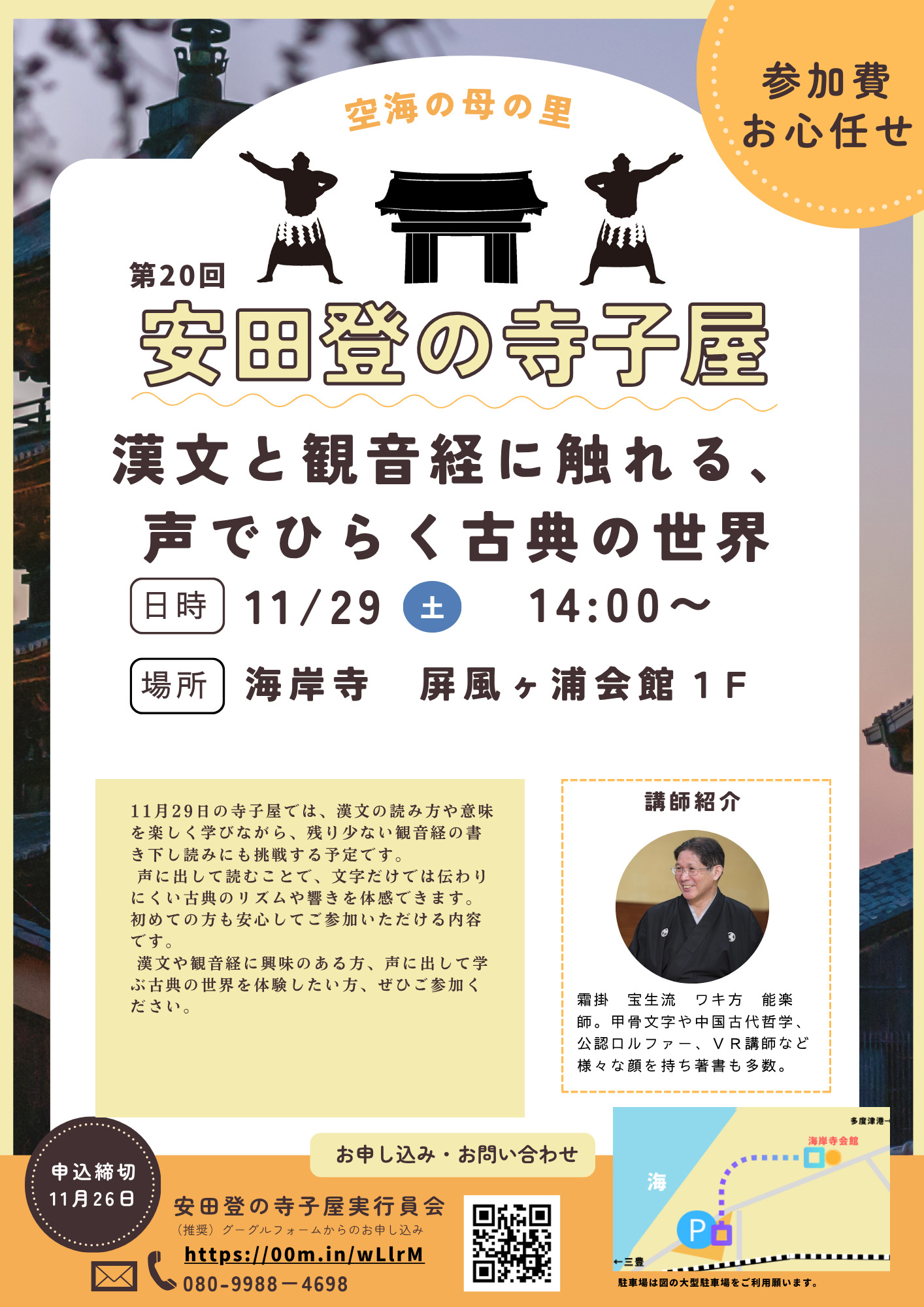 漢文や観音経に興味のある方、声に出して学ぶ古典の世界を体験したい方、ぜひご参加ください。