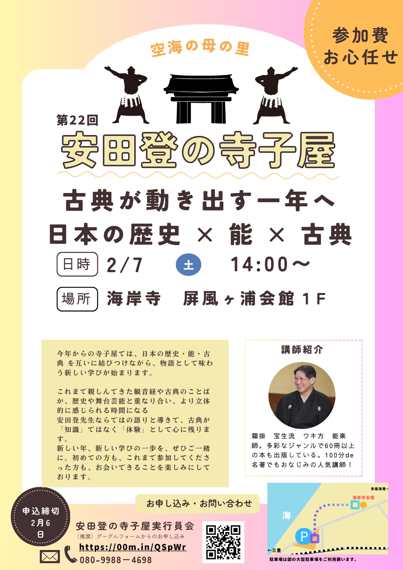 令和8年 第1回 安田登先生 寺子屋 開催のお知らせ